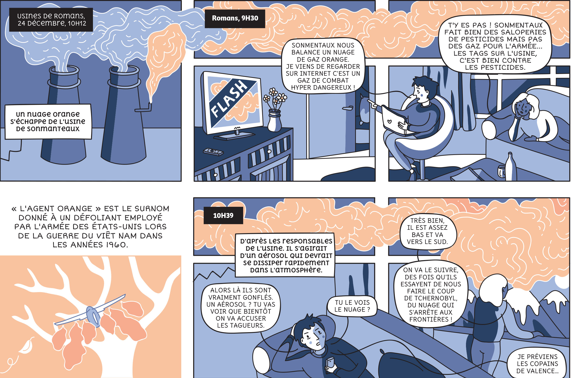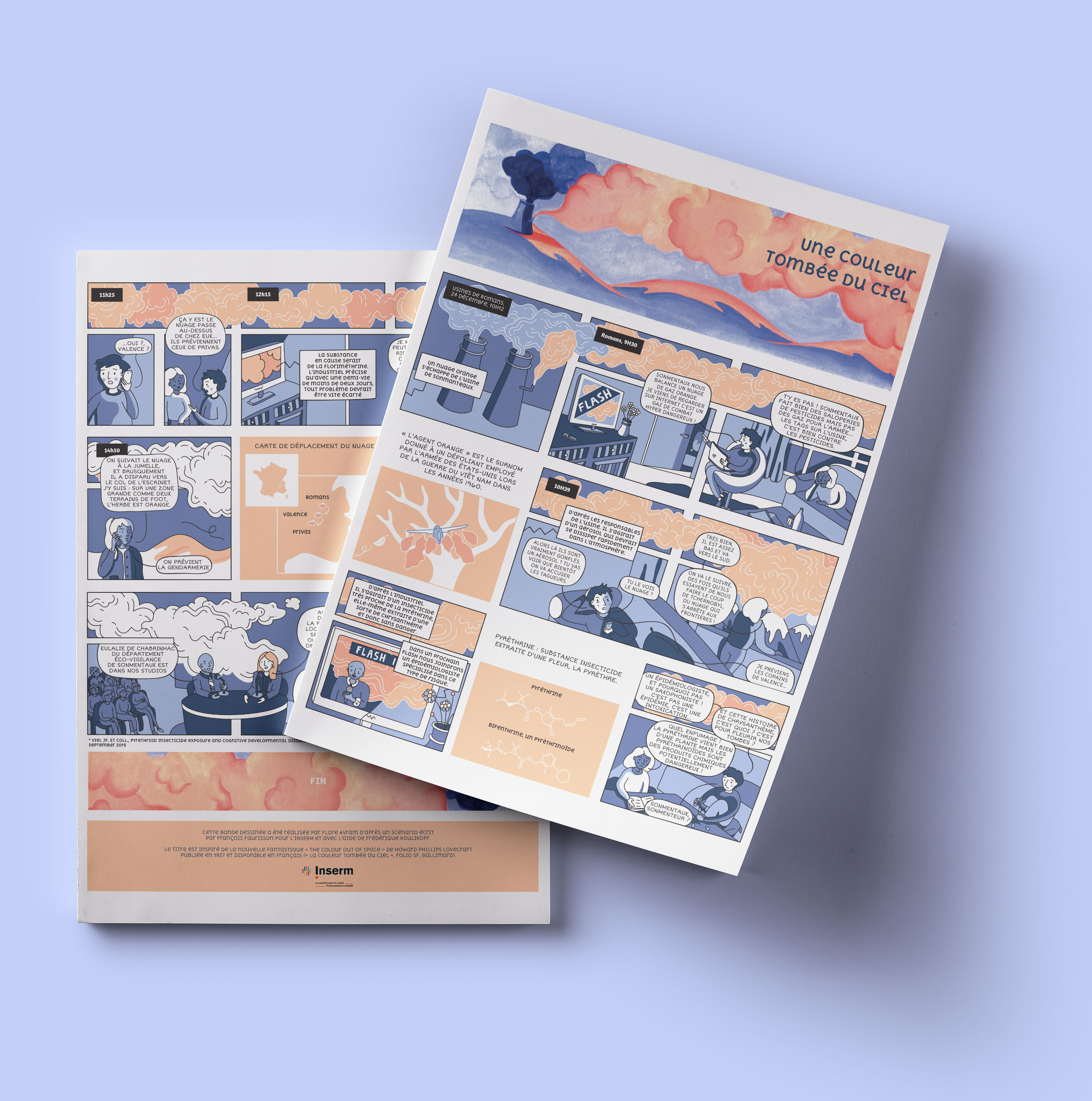 Illustration en bande dessinée du texte « Une couleur tombée du ciel »,