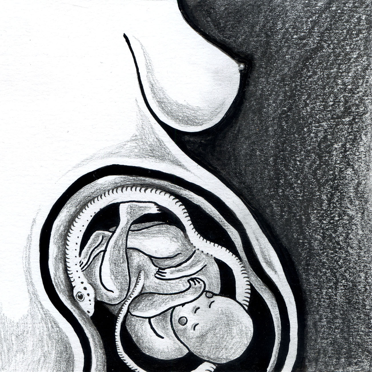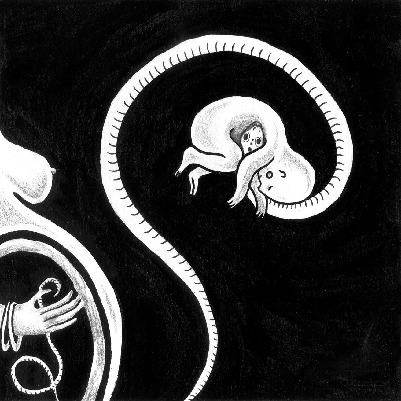 La première partie, sur le nombril, a été exposée à la Galerie des Arts Voisins début 2020.